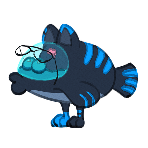 If you want to hear the reel news — Wooshi is here! They keep everyone updated about everything… all the time! To pay the bills, they also work part-time as a secretary.They claim to be a very impartial news source (their friends always tell them accurate information)!Wooshi has many friends: Among them are other Koilicos and the fish that live in their mouth- Who sound different everyday for an unknown reason…